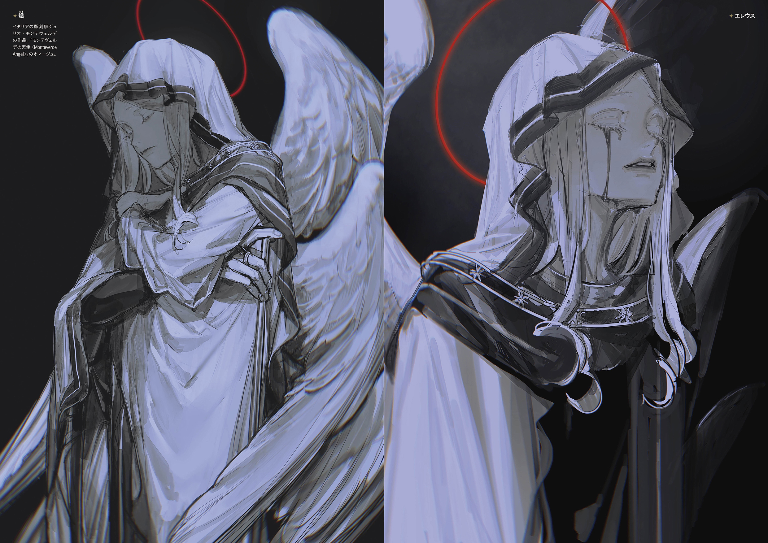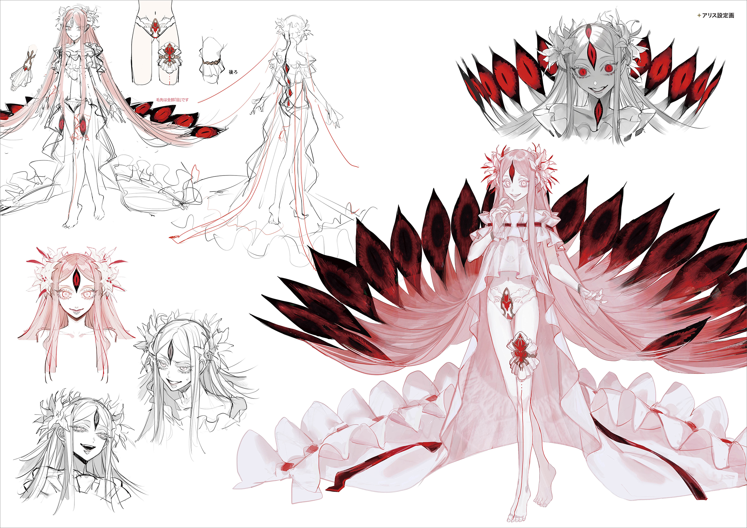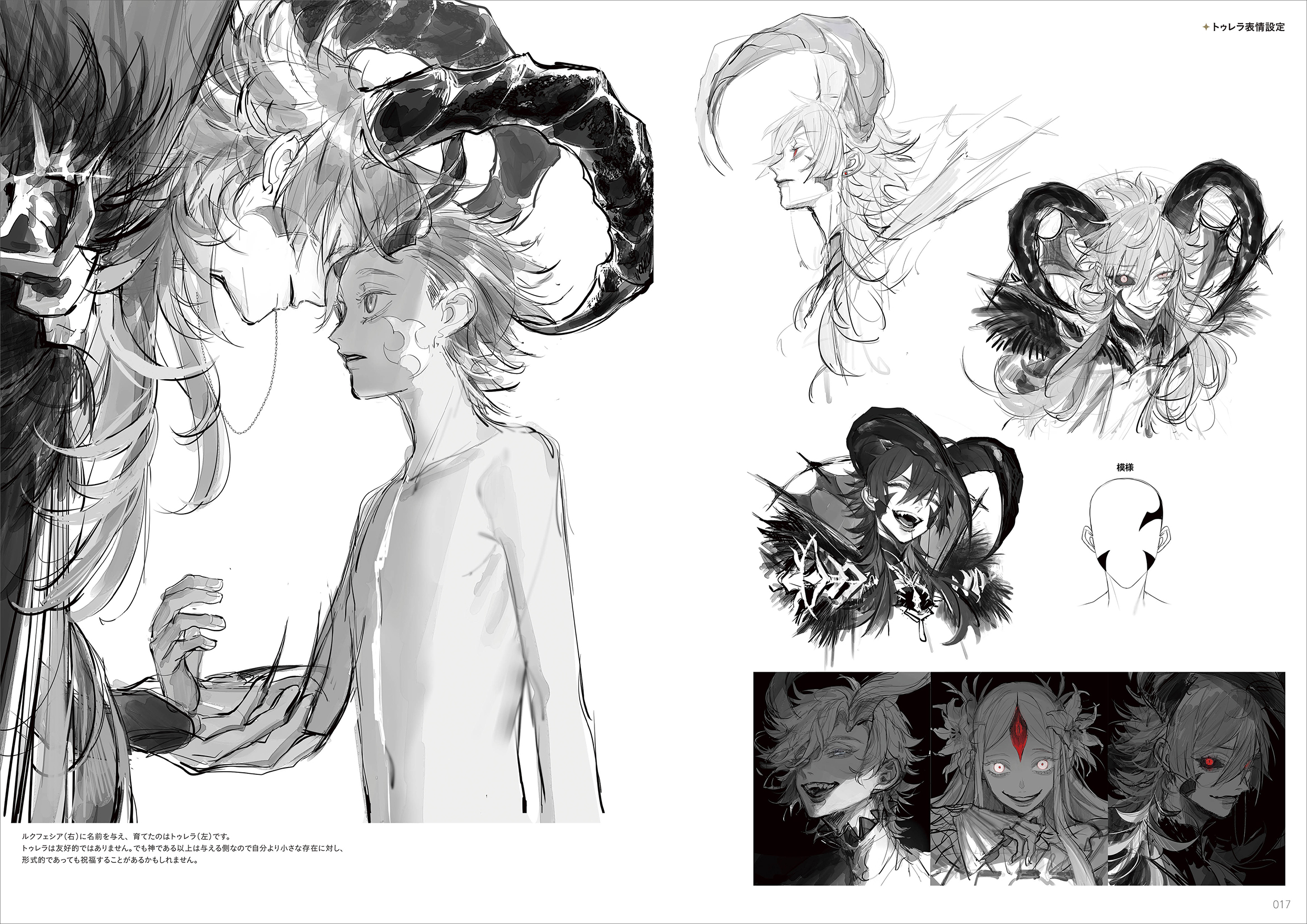 他にも、文庫本の装画やスマートフォンゲーム『Fate/Grand Order』の概念礼装を担当。スマートフォンゲーム『刀剣乱舞』三郎国宗のキャラクターデザインなど数々の実績を持ち、それらの原画も掲載している。