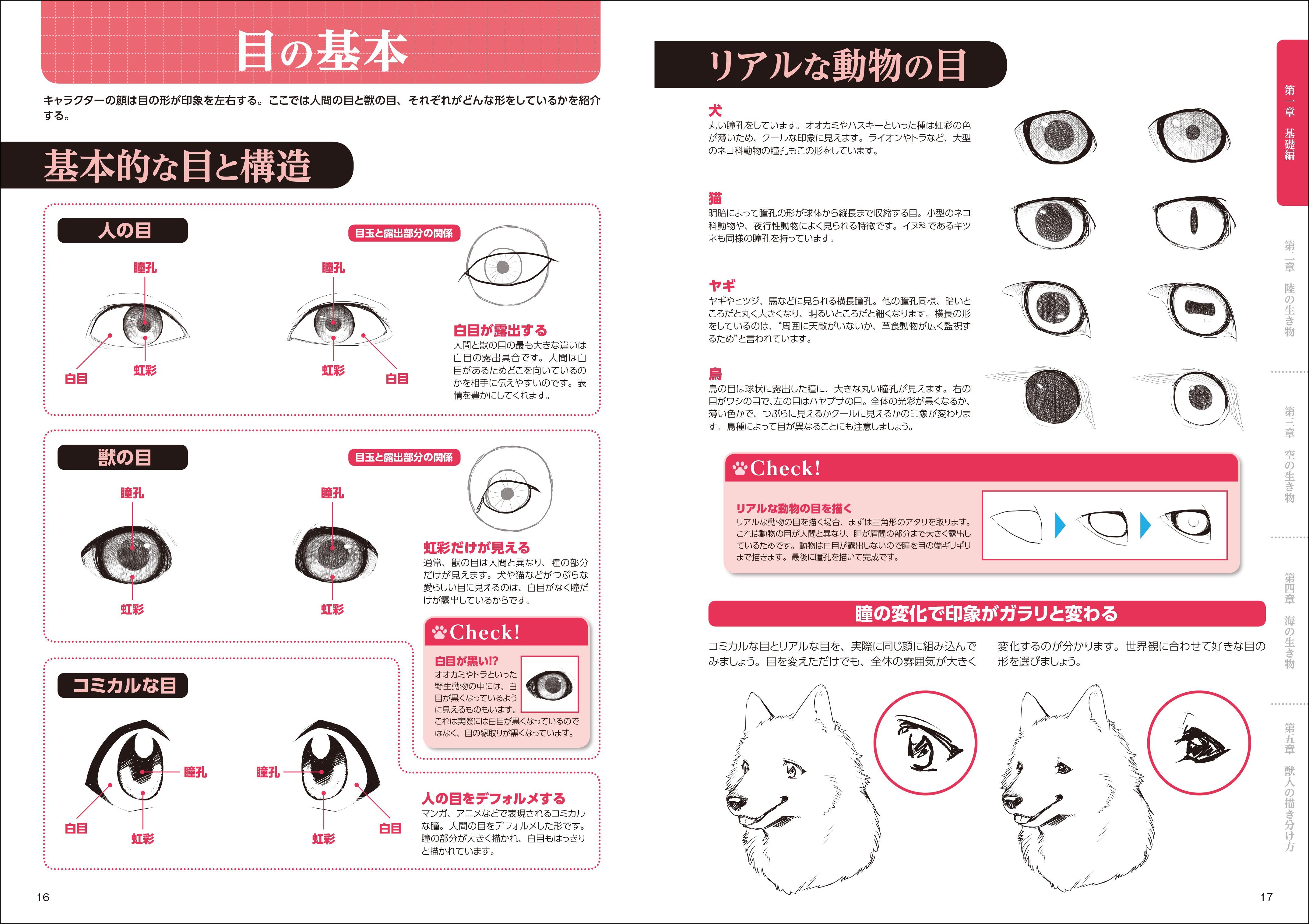 リアルタッチに寄せるとどうしても乏しくなりがちな表情の描き方も、人間的な表現と動物的な構造を組み合わせしっかり解説します。