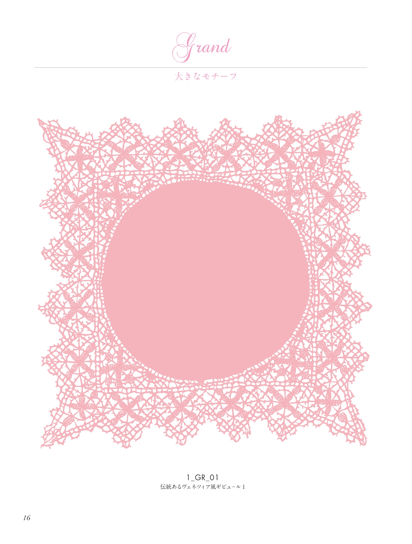 フランスを中心に、ベルギーやオランダなど近隣諸国で実際に作られた伝統的なレース柄を集め、パソコンで利用できるようデータ化しています。DVD-ROMには、装飾や枠飾りにも利用できる3,032点が収録されています。