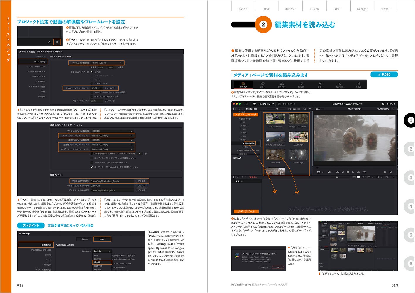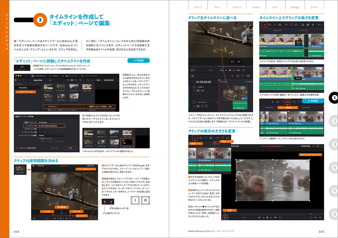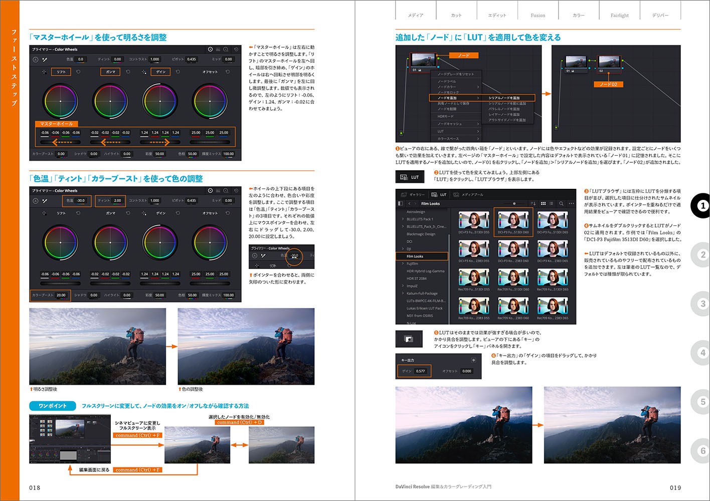 「カラー」ページだけではなく、「エディット」ページから「Fusion」「Fairlight」ページまで、すべてのページを解説しています。
