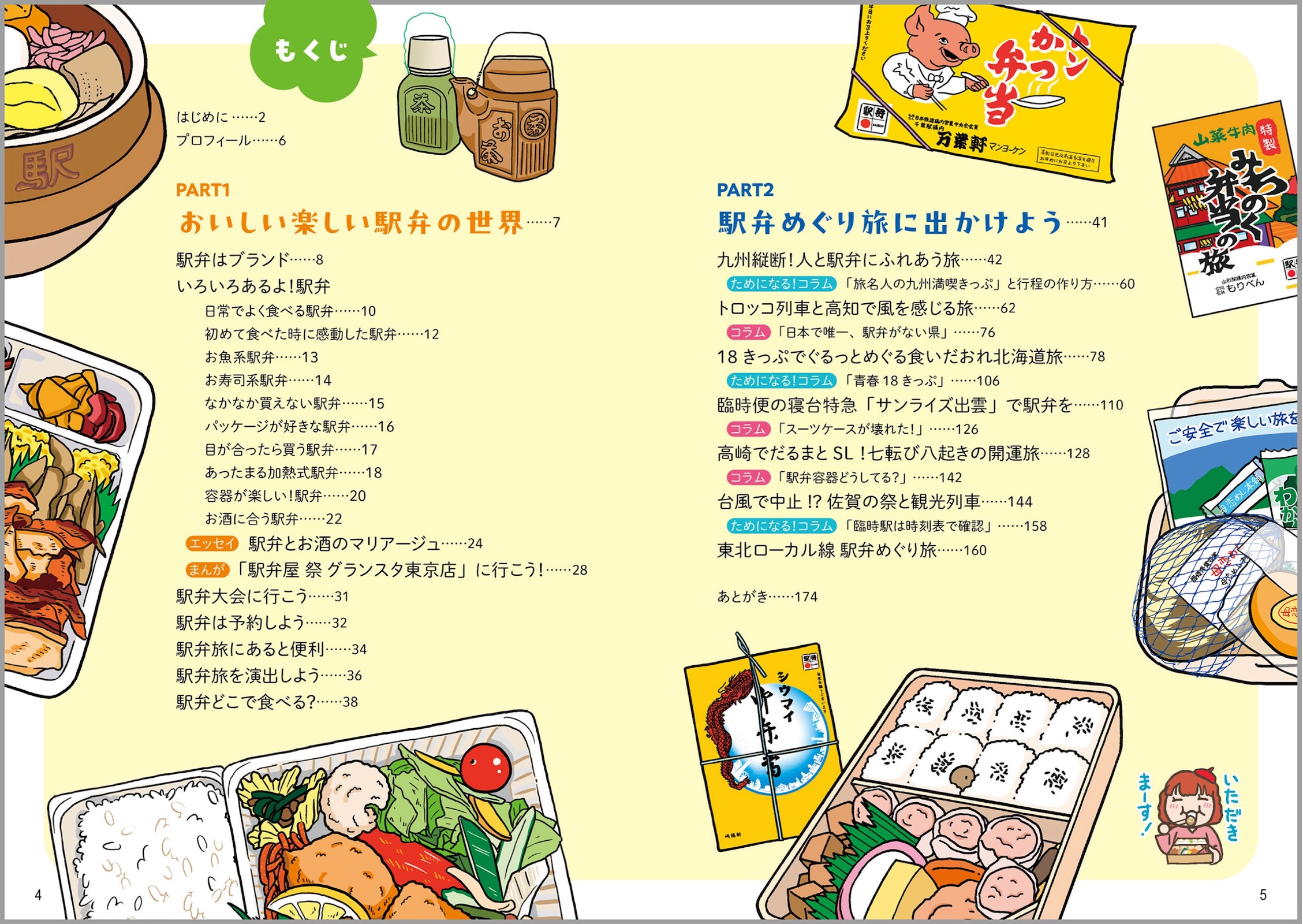 駅弁について:駅弁いろいろ/駅弁の選び方/駅弁とお弁当の違い/駅弁マークって?/掛け紙コレクション/あると便利・駅弁篇/駅弁をどこで食べる? 駅弁めぐり旅行記:高知トロッコ列車1泊2日/九州縦断2泊3日/北海道18きっぷ駅弁リレー4泊5日/東北観光列車旅1泊2日/臨時サンライズ出雲で2泊2日/佐賀・長崎イベント旅1泊2日/高崎だるまとSL旅1泊2日 きっぷや駅弁に関するコラム