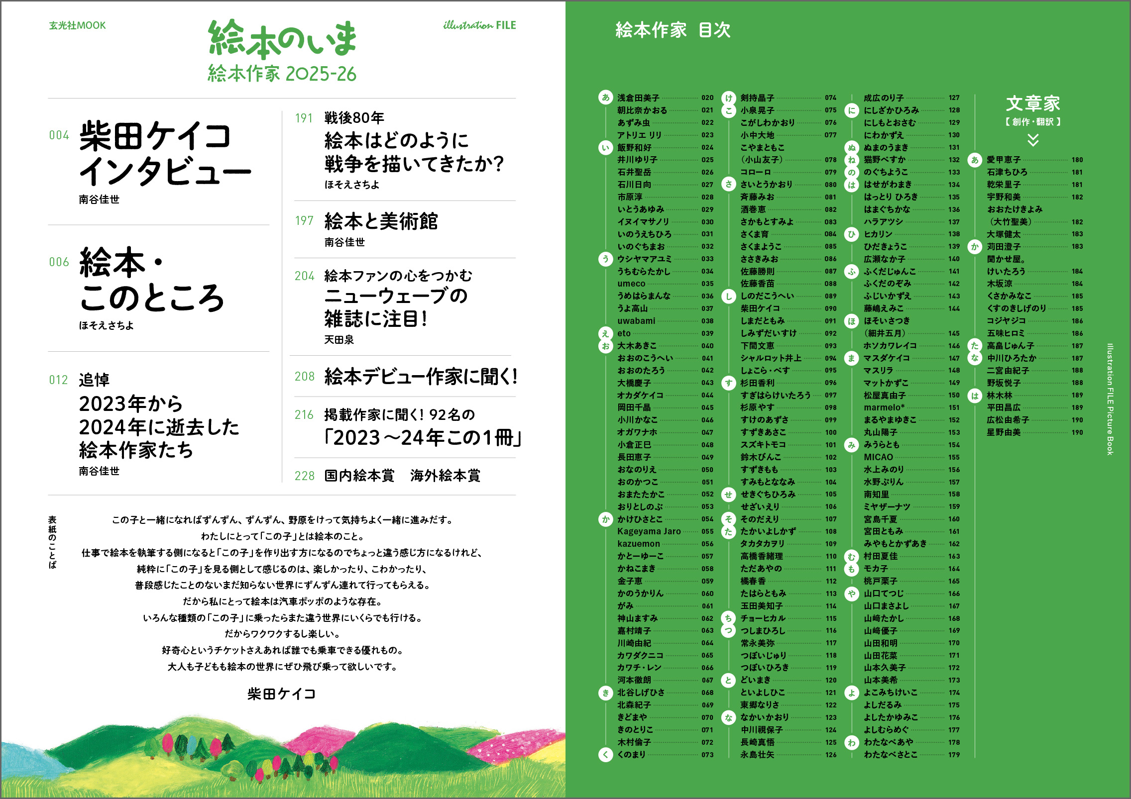 隔年で刊行している絵本作家の仕事ファイル『絵本のいま』7号目。絵本作家(画家、文筆家、翻訳家)182名の作品を、プロフィールと共にご紹介します。また、過去2年間の絵本の動向、絵本の潮流を伝える特集などもあります。作家との出会いを創出することはもちろん、「絵本の現在」を伝えることを主眼とした1冊です。