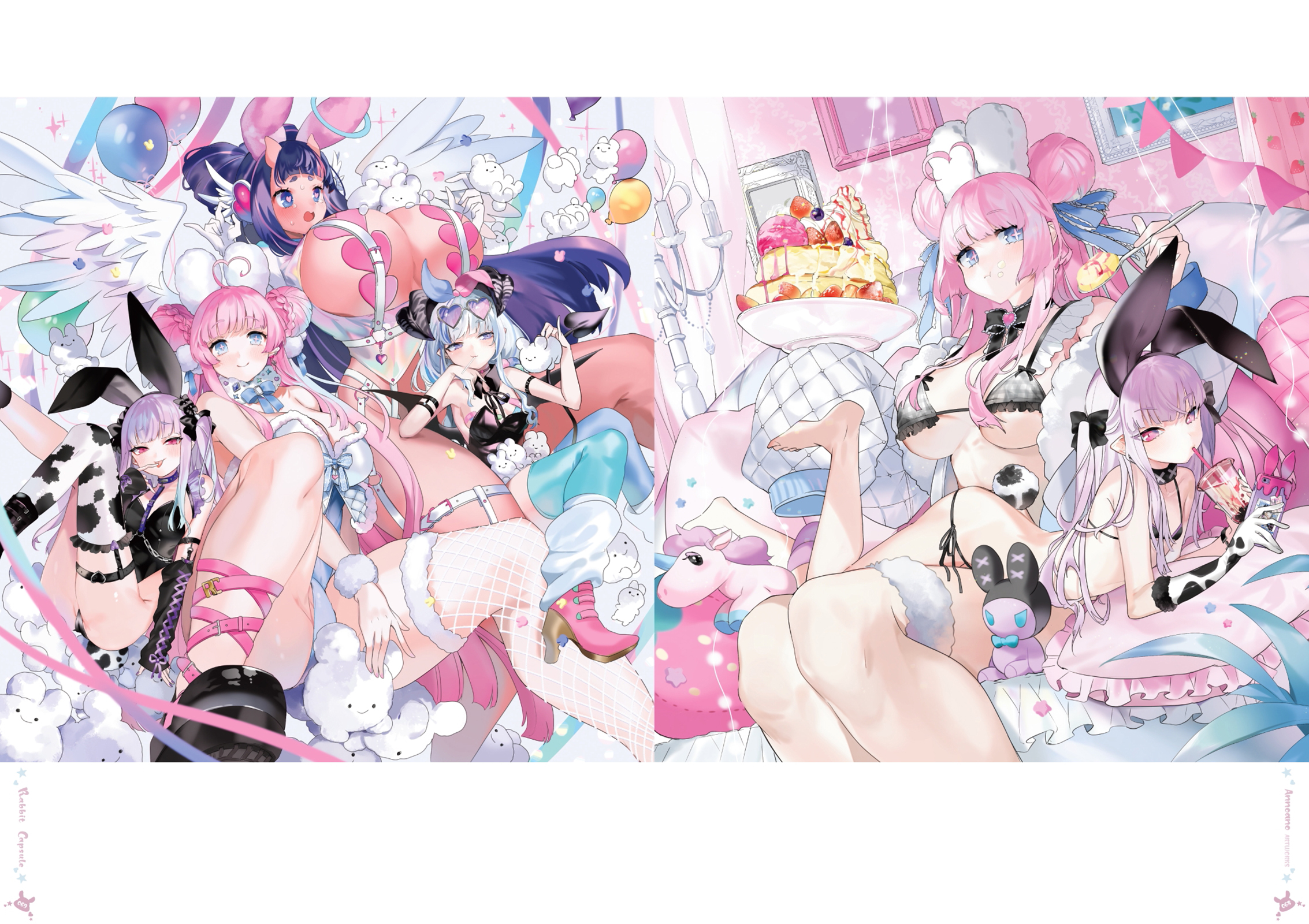 「バニー天使」や、「亜人のうさぎさんとハレくん」のイラストをはじめとしたオリジナルイラストはもちろん、10年に及ぶ活動の中で手掛けてきたクライアントワークも一挙収録!!