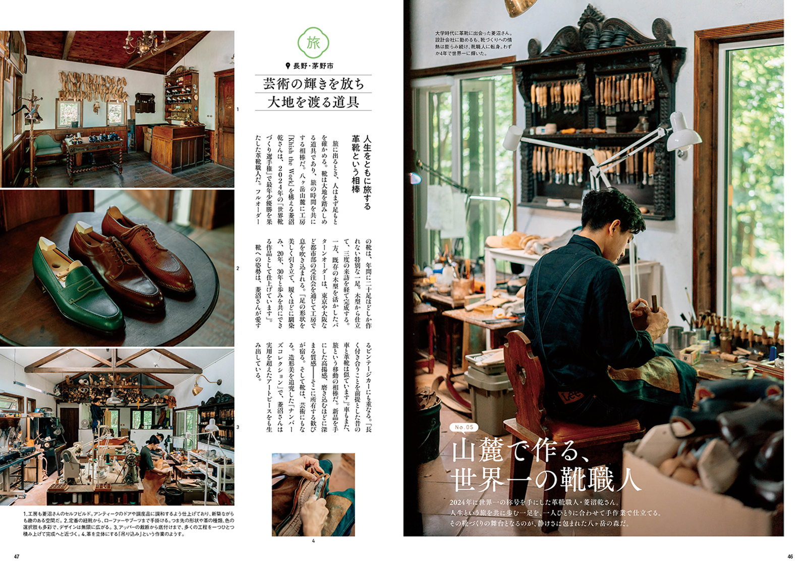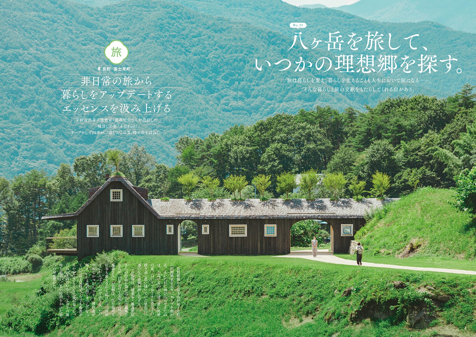 「旅」については、確固たる哲学に基づいた自然体験ツアーなどをはじめ、八ヶ岳生活の豊かさをリアルに体験できる新コンセプトの「宿」紹介まで、読者が自然の中で自分を解放できるハイクオリティな観光レジャー情報を紹介。